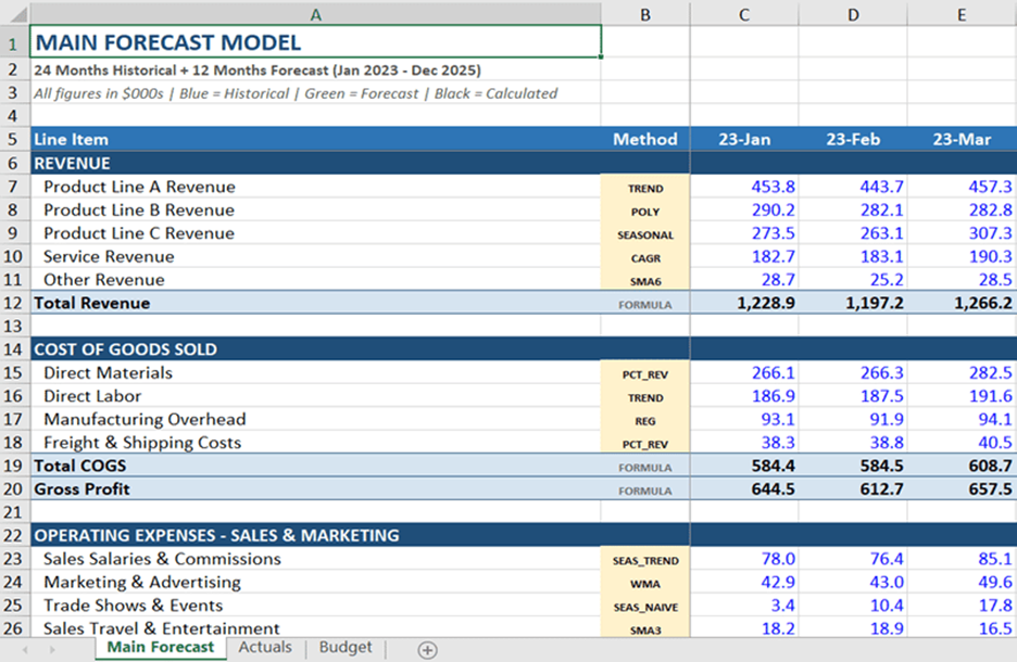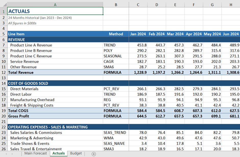 - מגמות ביצועים: שימוש בממוצעים נעים כדי לנטרל "רעשים" חודשיים ולזהות מגמות עומק ב-COGS.